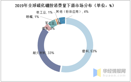 2019年全球碳化硼按消費(fèi)量下游市場(chǎng)分布(單位:%)